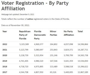 Since we moved here I heard about the growing Republican registration advantage over Democrats which proved my intuition was correct. As you can see from the chart, when we moved here the Democrats had a 250,000 plus advantage, now it’s Republicans 350,000 plus! That is amazing, and speaks to the genius of the Founding Fathers of the great American republic (it is not a Democracy).